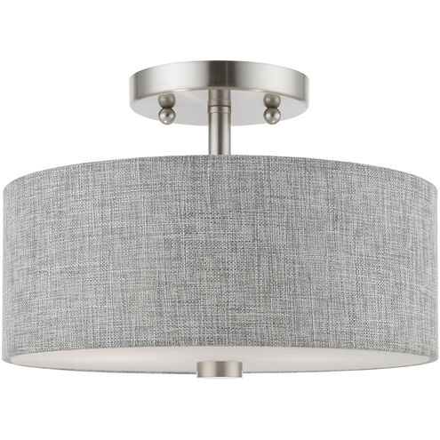 2 Light Brushed Nickel with Shiny White Accents Semi-Flush
