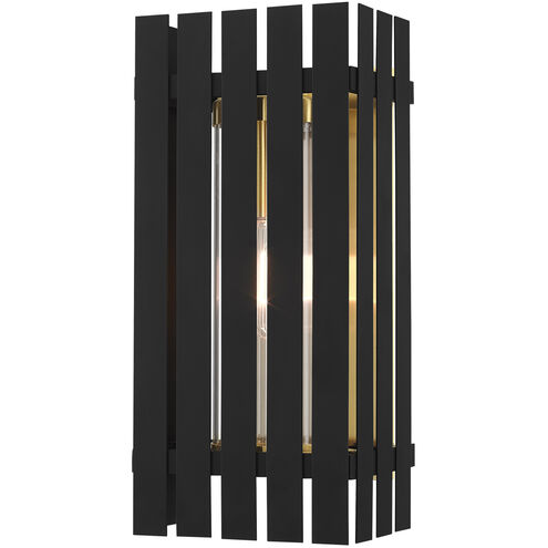 Greenwich 1 Light 17 inch Black with Satin Brass Accents Outdoor Wall Lantern